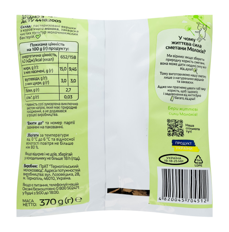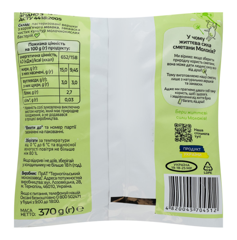 | Склад (укр.) | Пастеризовані вершки з коров'ячого молока, закваска чистих культур молочнокислих бактерій |