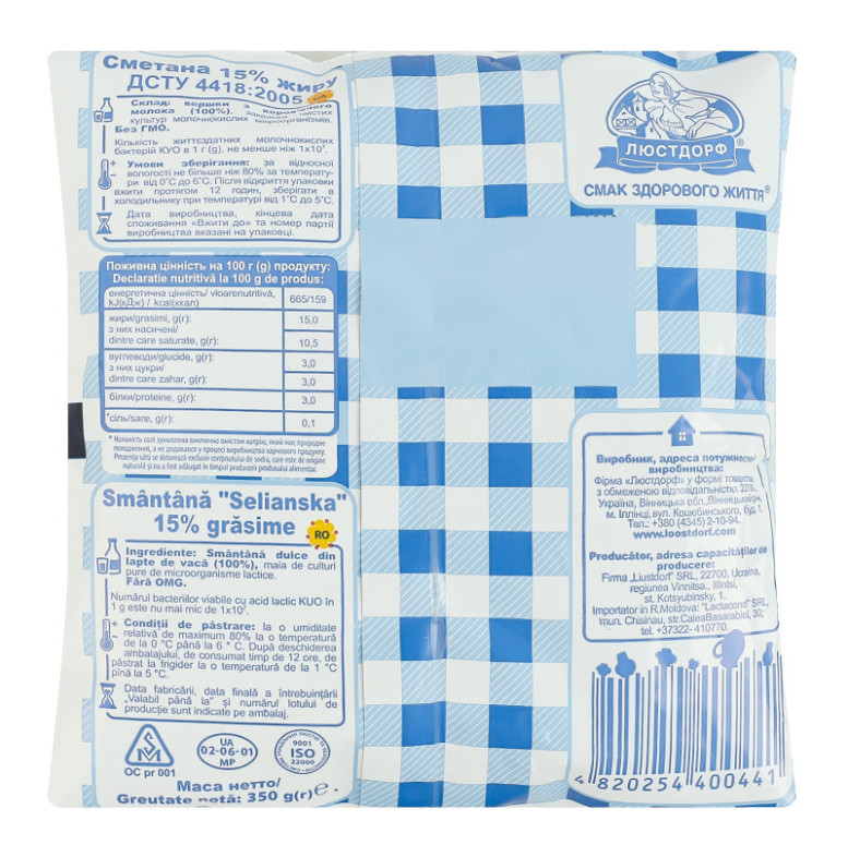 | Вид продукції | СМЕТАНА |