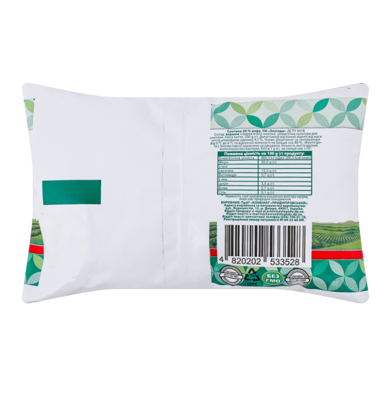 Сметана 20% Злагода м/у 200г