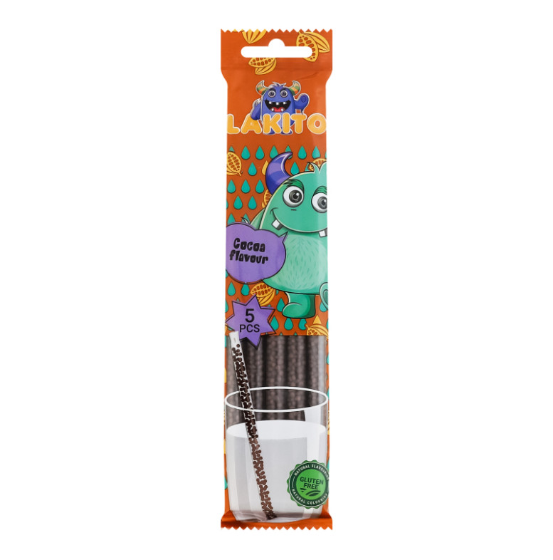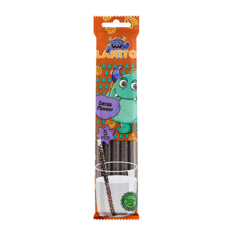 Соломинка для молока з розчинними цукровими гранулами зі смаком какао Lakito м/у 5х6г