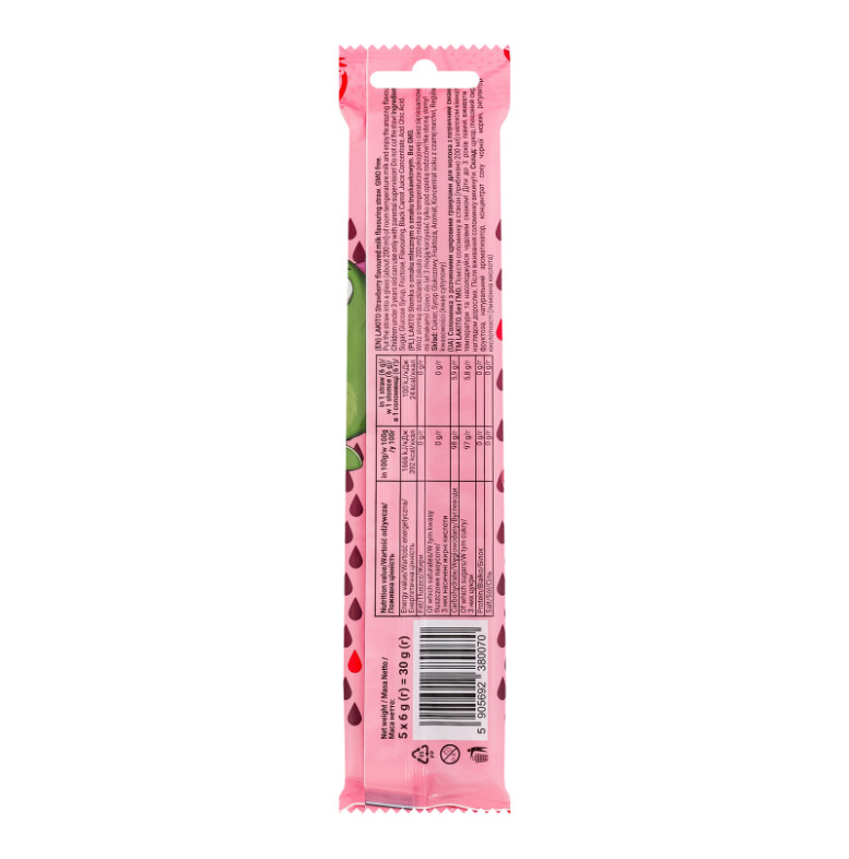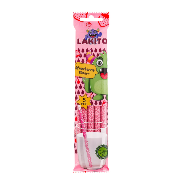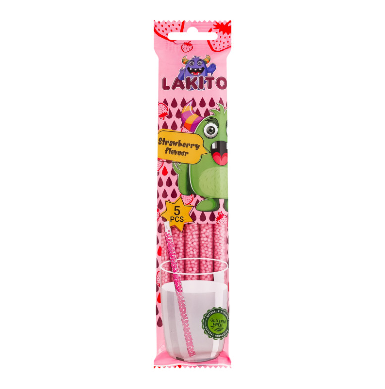 Соломинка для молока з розчинними цукровими гранулами з полуничним смаком Lakito м/у 5х6г