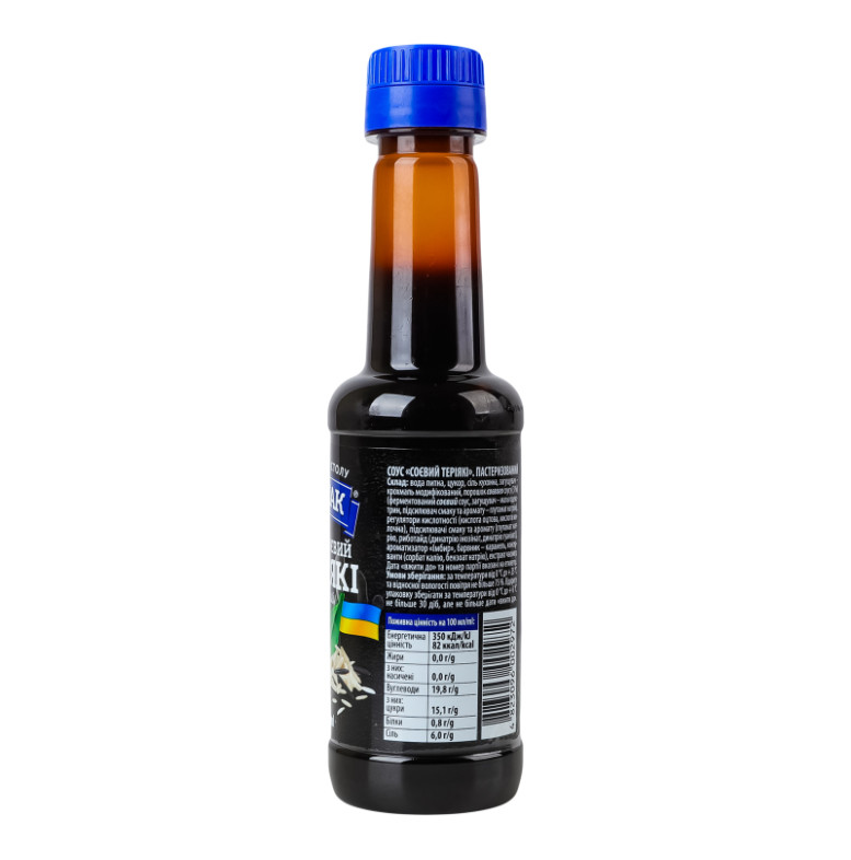 | Склад (укр.) | Вода питна, цукор, сіль кухонна, загущувач - крохмаль модифікований, порошок соєвого соусу (3%) (ферментований соєвий соус, загущувач - мальтодекстрин, підсилювач смаку та аромату - глутамат натрію), регулятори кислотності (кислота оцтова, кислота молочна), підсилювачі смаку та аромату (глутамат натрію, риботайд (динатрію інозінат, динатрію гуанілат)) ароматизатор "Імбир", барвник - карамель, консерванти (сорбат калію, бензоат натрію), екстракт часнику |