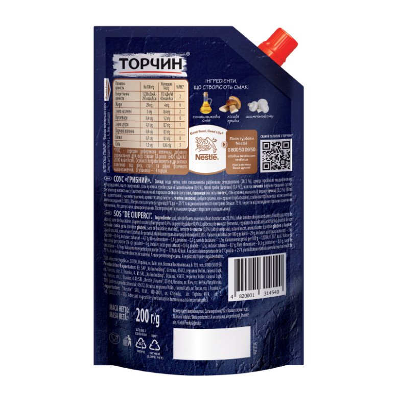 Соус з лісовими грибами та шампіньйонами Грибний Торчин д/п 200г