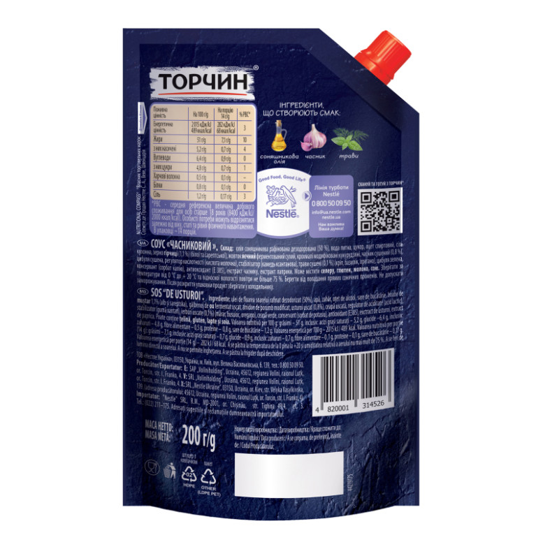 Соус з травами та часником Часниковий Торчин д/п 200г