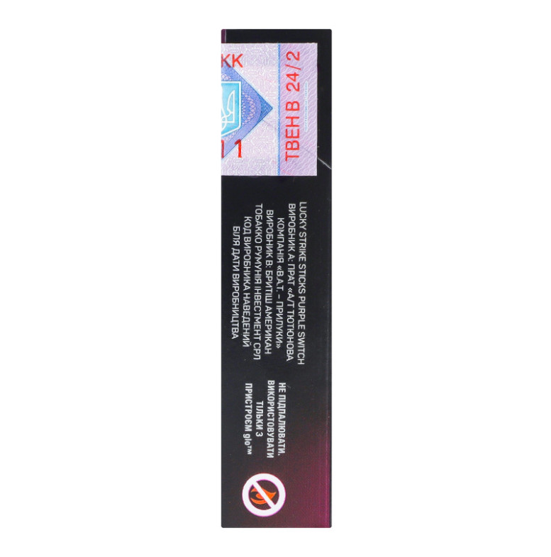Виріб тютюновмісний для електричного нагрівання з фільтром Lucky Strike Purple Switch 20шт