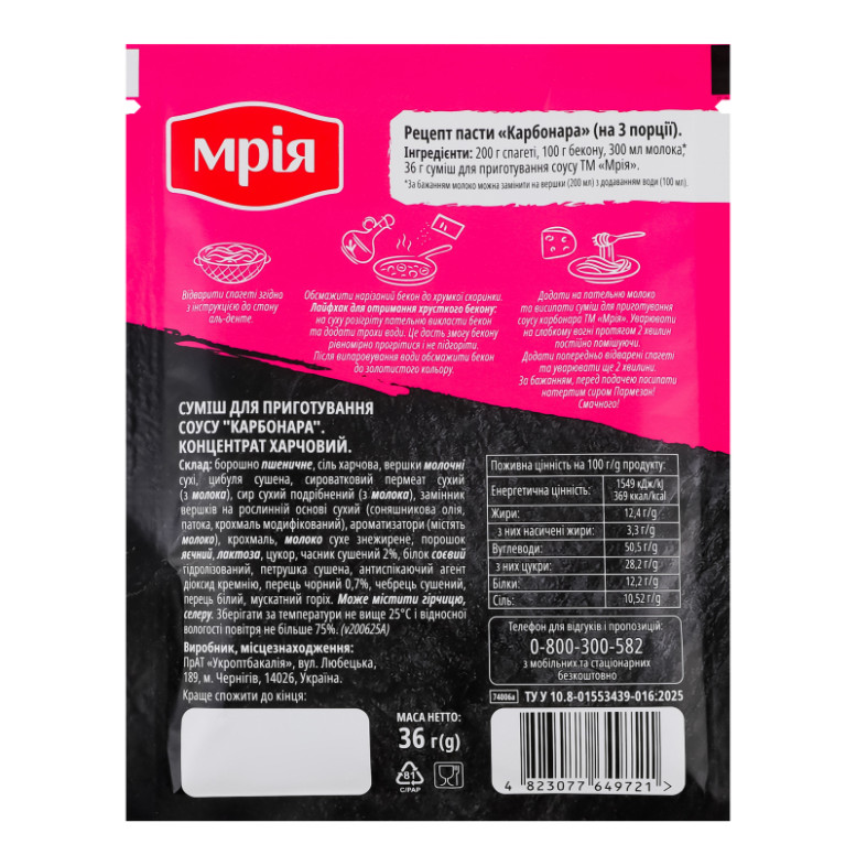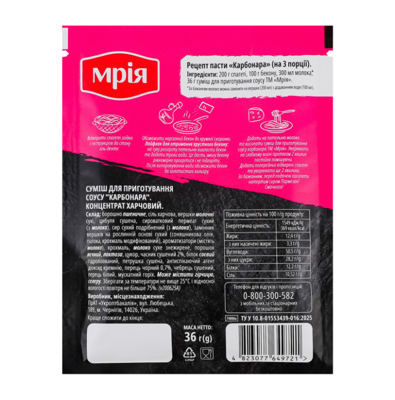 | Вид продукції | СУМІШ ДЛЯ ПРИГОТУВАННЯ СОУСУ |