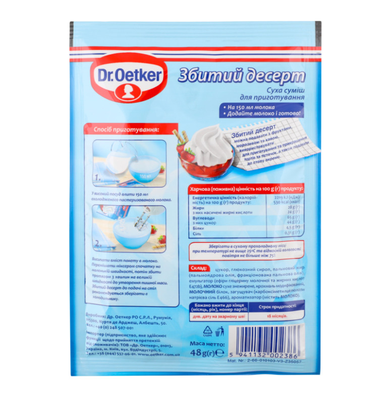| Вид продукції | СУМІШ ДЛЯ ВИПІЧКИ |