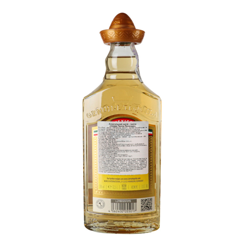 Склад: Спирт (отриманий із соку агави), вода, витримується не менш 2-х місяців в дубових бочках
