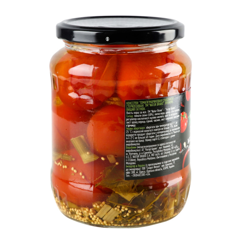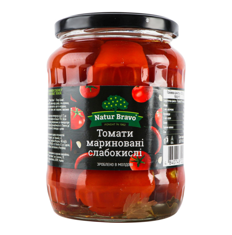 Томати мариновані слабокислі Natur Bravo c/б 670г