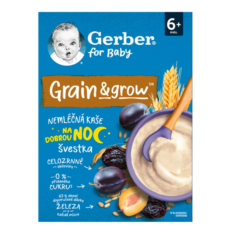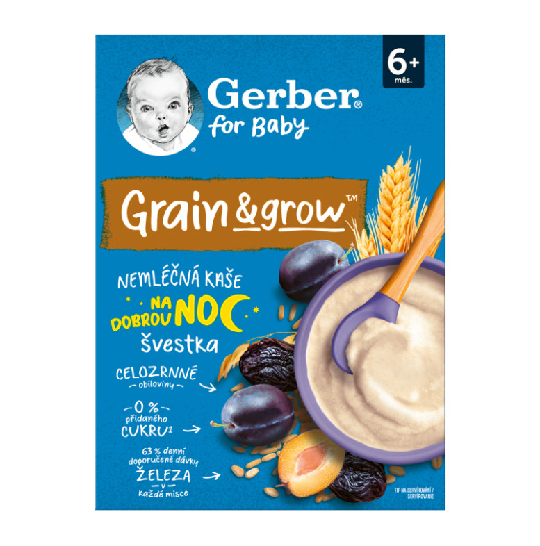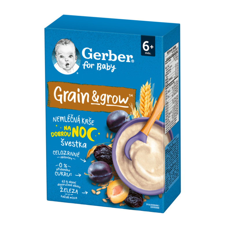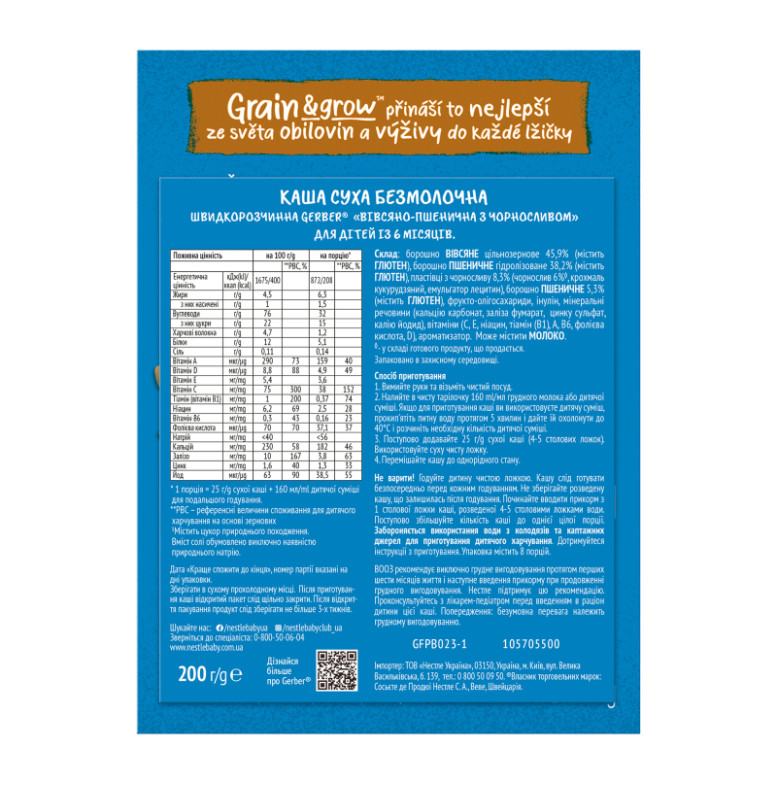 Каша безмолочна суха для дітей від 6міс швидкорозчинна Вівсяно-пшенична з чорносливом Grain&Grow Gerber к/у 200г
