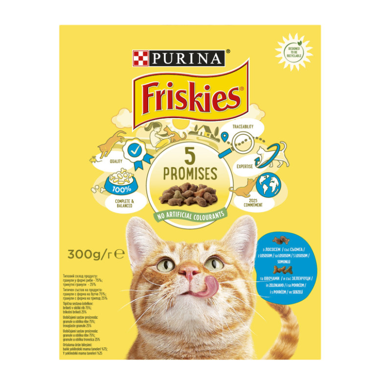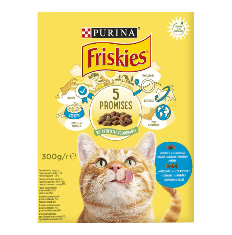 Корм сухий повнораціонний для стерилізованих котів з лососем та овочами Friskies к/у 300г