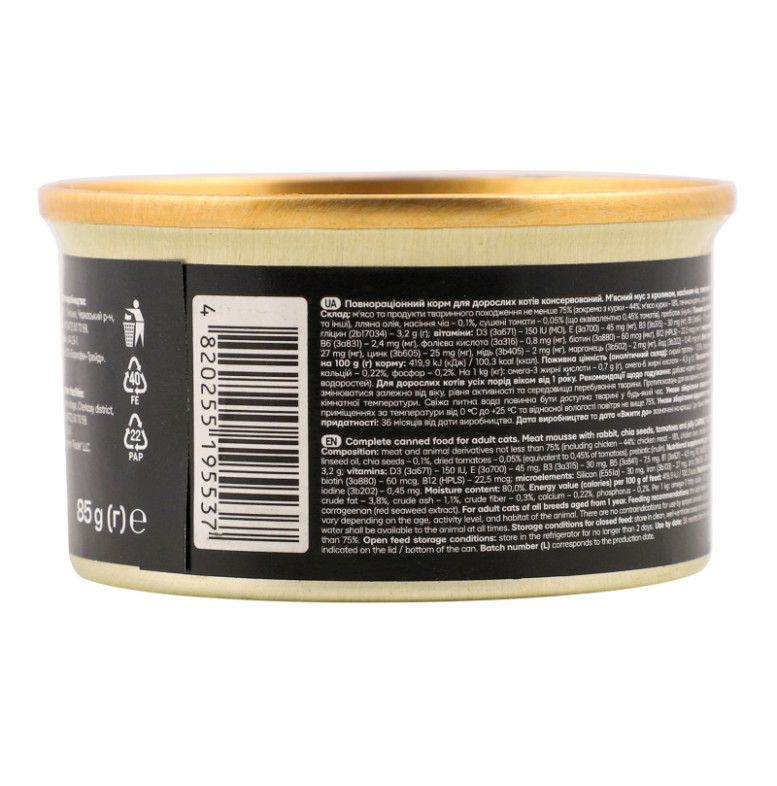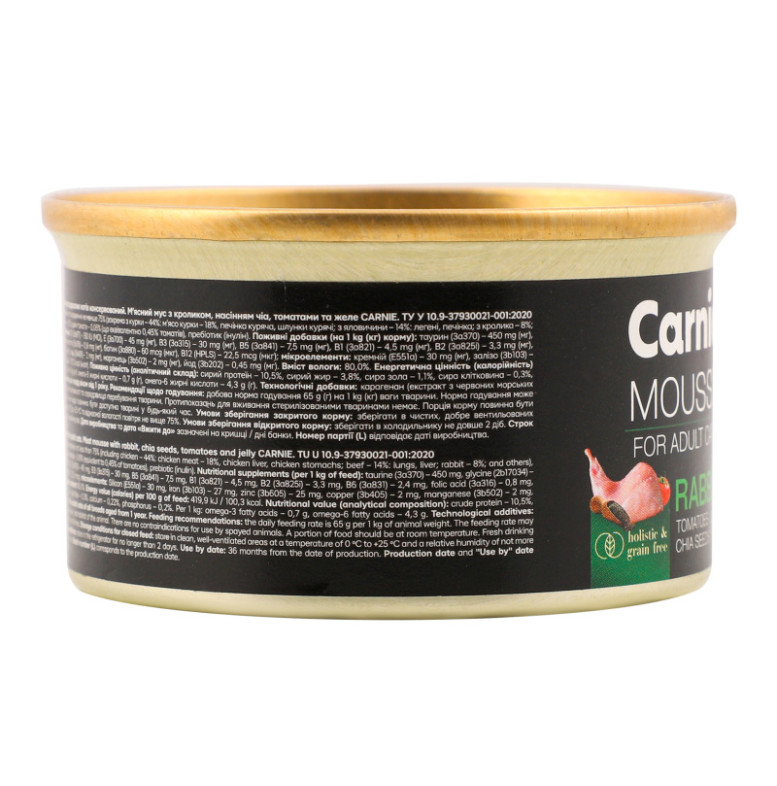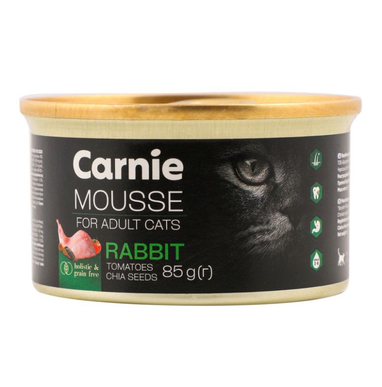 Корм д/дорослих котів Мус з кроликом насінням чіа томатами та желе 85г ж/б Carnie