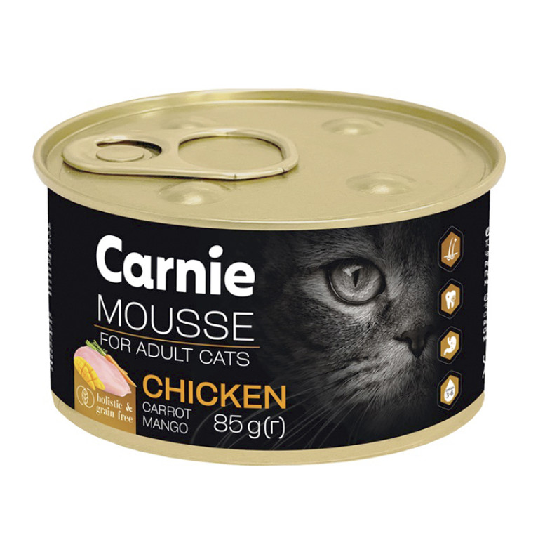 Корм д/дорослих котів Мус з куркою манго морквою та желе 85г ж/б Carnie