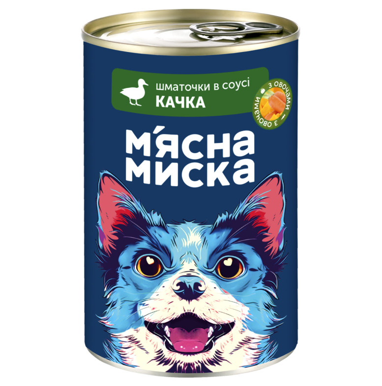 Корм шматочки М'ясна Миска для дорослих собак з качкою та овочами з/б 415г