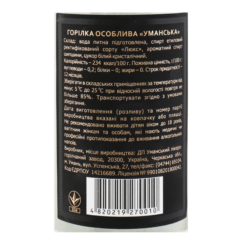 Горілка Уманська Legacy с/пл 500мл