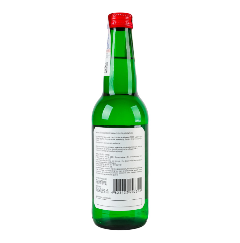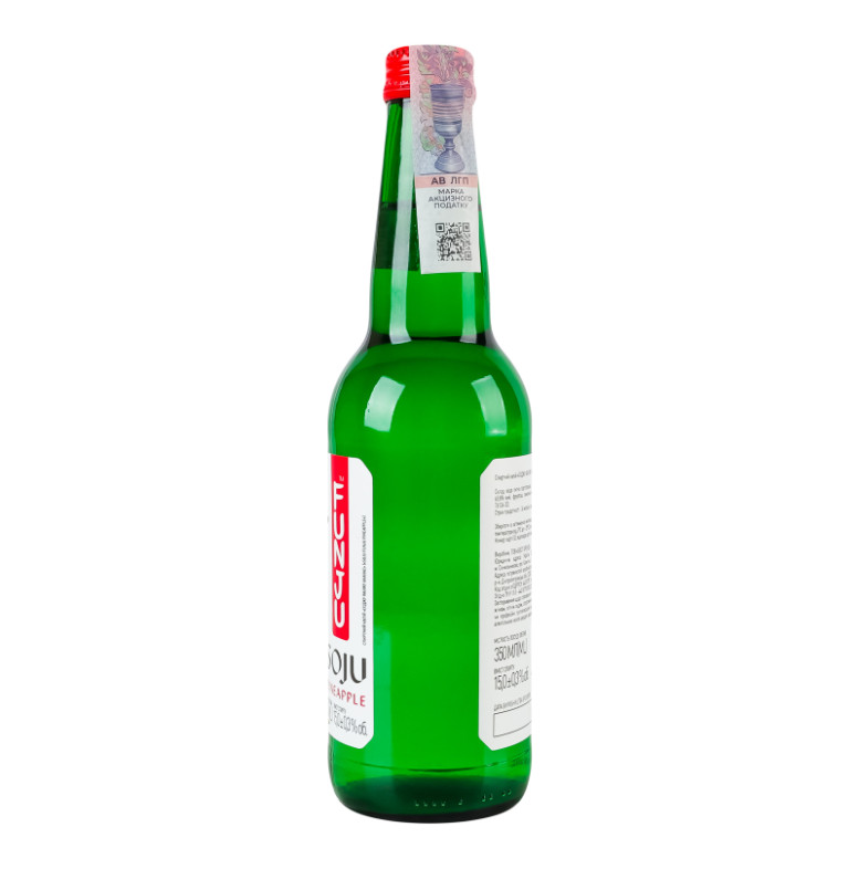 | Склад (укр.) | Вода питна підготовлена, спирт етиловий ректифікований "Люкс", цукровий сироп 65.8%-вий, фруктоза, лимонна кислота, ароматизатор Givaudan GmbH "Ананас" (арт. 76136-33) |