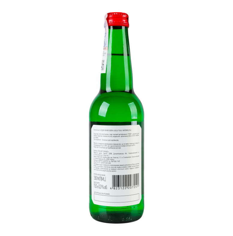 | Склад (укр.) | Вода питна підготовлена, спирт етиловий ректифікований "Люкс", цукровий сироп 65.8%-вий, фруктоза, лимонна кислота, натуральний ароматизатор Dohler GmbH, "Кавун", арт. 5.86866 |