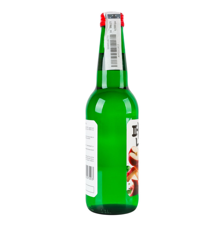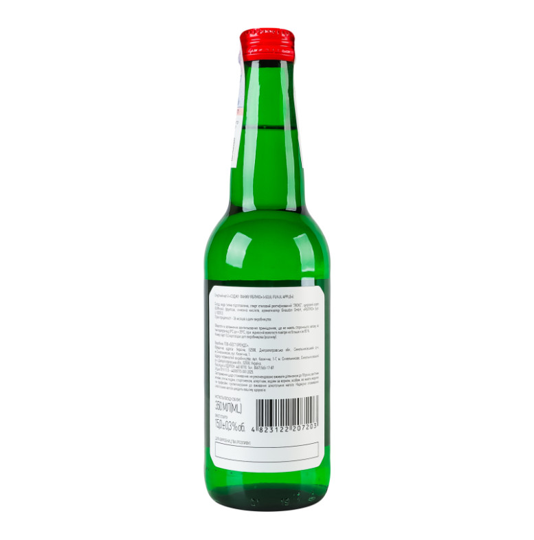 | Склад (укр.) | Вода питна підготовлена, спирт етиловий ректифікований "Люкс", цукровий сироп 65.8%-вий, фруктоза, лимонна кислота, ароматизатор Givaudan GmbH, "Яблуко" (арт. L-182512) |