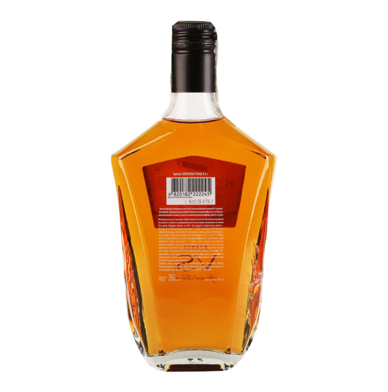 Склад: Вітчизняні та/або імпортні дистиляти винні витримані не менше 3-х років та з додаванням дистилятів винних витриманих не менше 6-ти років, барвник цукровий колер