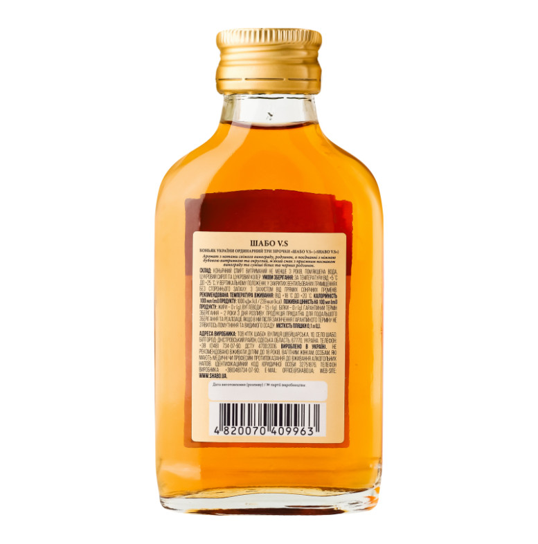 Склад: Коньячні спирти не менше 3-х років витримки, пом'якшена вода, цукровий колер, цукровий сироп