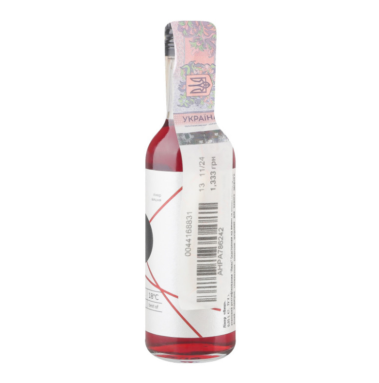 Склад: Вода питна підготовлена, спирт етиловий ректифікований "Люкс" (настояний на вишні та бобах тонка), цукор білий