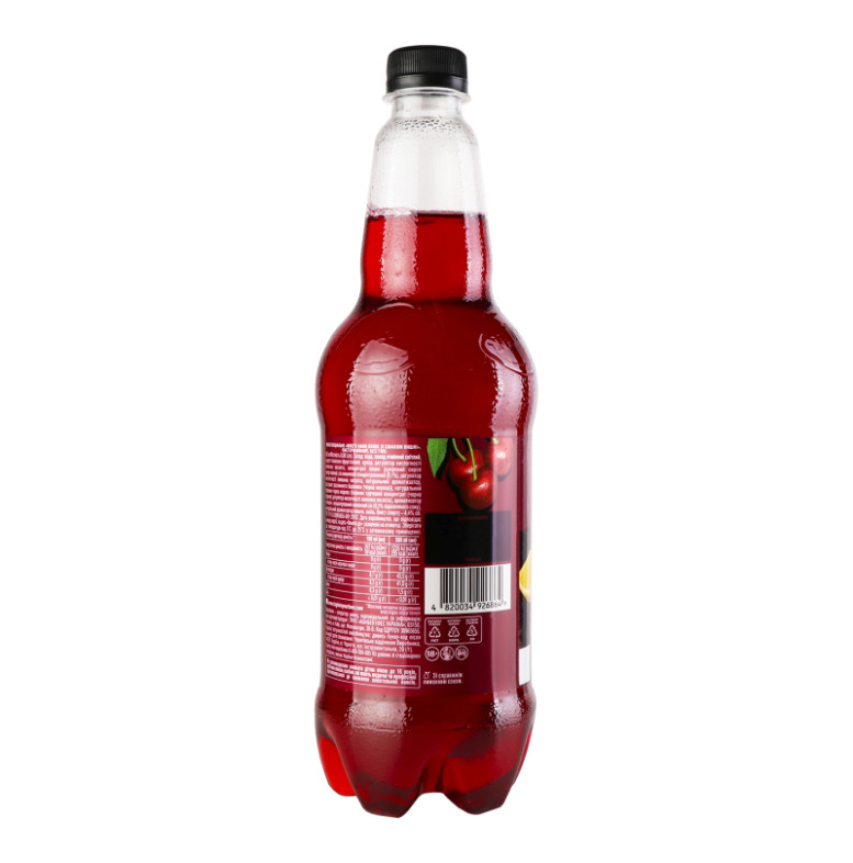 Склад: Вода, солод ячмінний світлий, сироп глюкозно-фруктозний, цукор, регулятор кислотності лимонна кислота, концентрат вишні (цукровий сироп інвертований, сік вишневий концентрований (0.1%), регулятор кислотності лимонна кислота, натуральний ароматизатор, екстракт рослинного барвника (чорна морква)), натуральний барвник чорна морква (барвник харчовий концентрат (чорна морква), регулятор кислотності лимонна кислота), ароматизатор "Акація", концентрований лимонний сік (0.5% відновленого соку), натуральний ароматизатор вишня, хміль