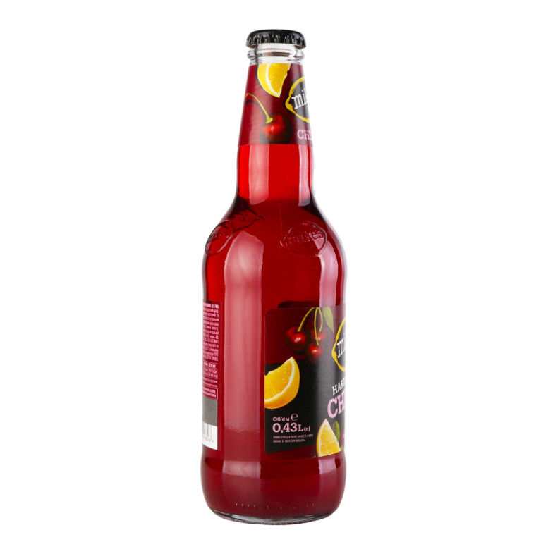 Склад: Вода, солод ячмінний світлий, сироп глюкозно-фруктозний, цукор, регулятор кислотності лимонна кислота, концентрат вишні (цукровий сироп інвертований, сік вишневий концентрований (0.1%), регулятор кислотності лимонна кислота, натуральний ароматизатор, екстракт рослинного барвника (чорна морква)), натуральний барвник чорна морква (барвник харчовий концентрат (чорна морква), регулятор кислотності лимонна кислота), ароматизатор "Акація", концентрований лимонний сік (0.5% відновленого соку), натуральний ароматизатор вишня, хміль