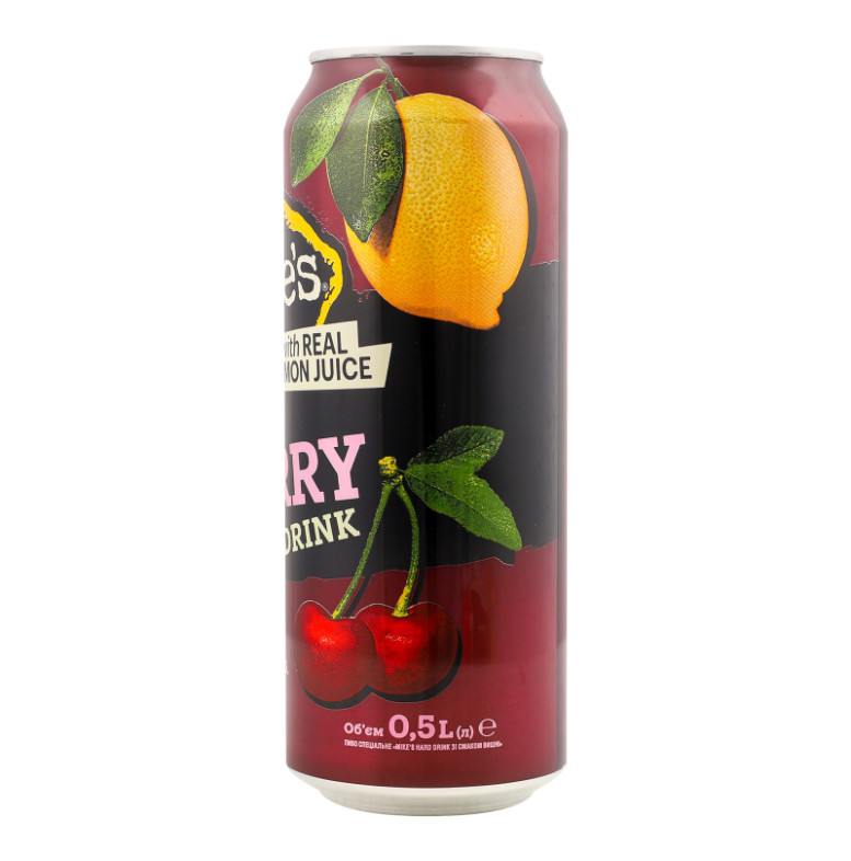 Склад: Вода, солод ячмінний світлий, сироп глюкозно-фруктозний, цукор, регулятор кислотності лимонна кислота, концентрат вишні (цукровий сироп інвертований, сік вишневий концентрований (0.1%), регулятор кислотності лимонна кислота, натуральний ароматизатор, екстракт рослинного барвника (чорна морква)), натуральний барвник чорна морква (барвник харчовий концентрат (чорна морква), регулятор кислотності лимонна кислота), ароматизатор "Акація", концентрований лимонний сік (0.5% відновленого соку), натуральний ароматизатор вишня, хміль