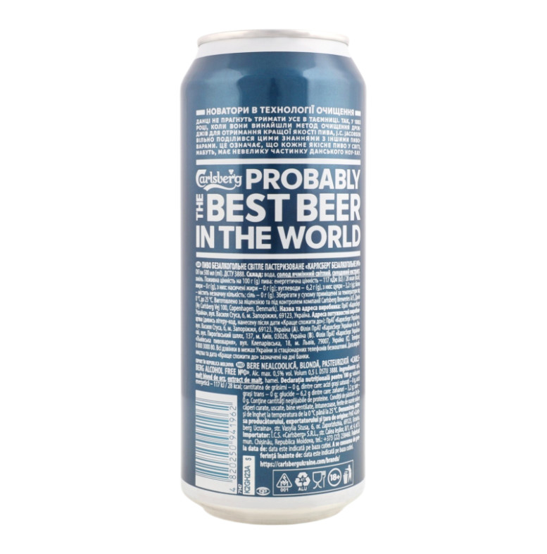 Пиво 0.5л 0.5% світле пастеризоване Pilsner Carlsberg з/б