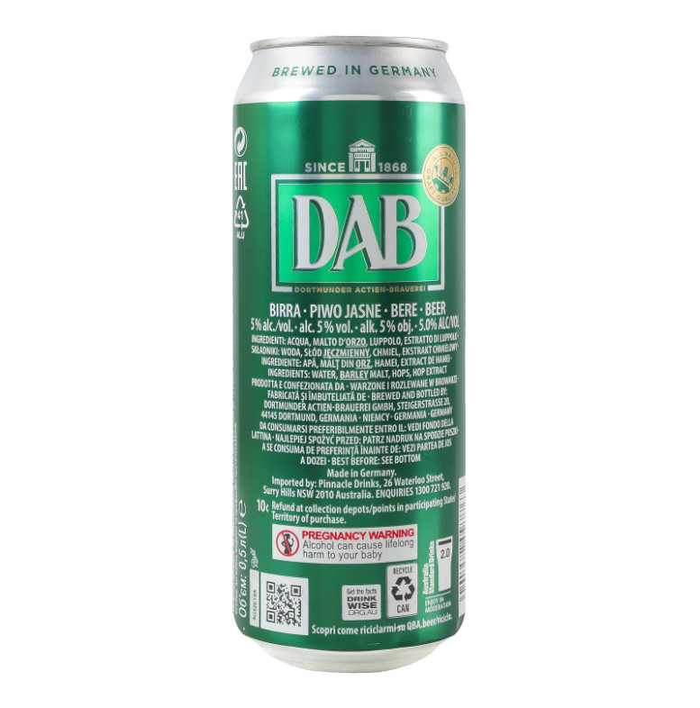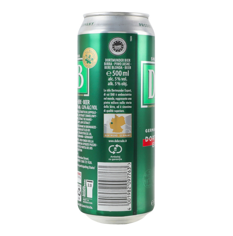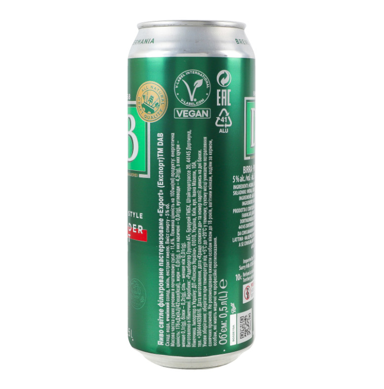 Пиво 0.5л 5% світле фільтроване пастеризоване Export DAB з/б
