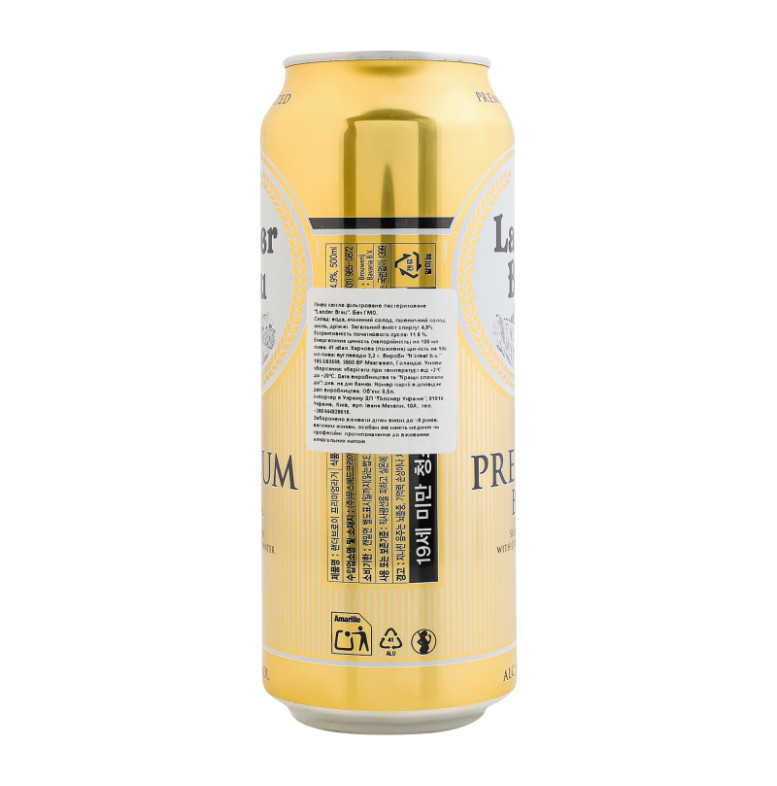 Пиво 0.5л 4.9% світле фільтроване пастеризоване Premium Lander Brau з/б