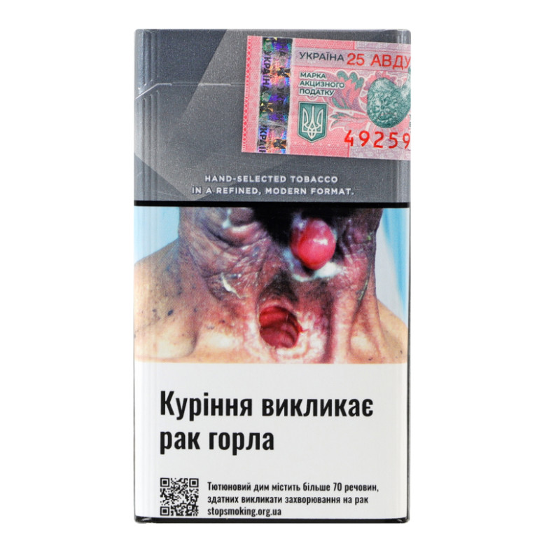 | Застереження/міри безпеки (ua) | Куріння викликає рак горла. Тютюновий дим містить понад 70 речовин, здатних викликати захворювання на рак. Куріння вбиває - кидай курити зараз |