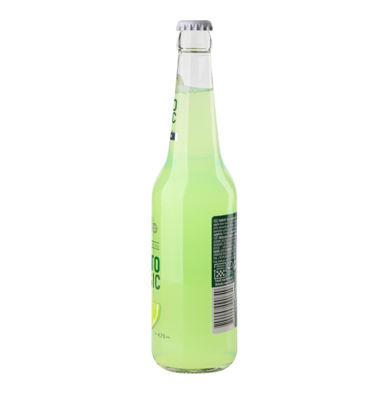 Склад: Вино з яблук та лайма (51%), вода, цукор, вуглекислий газ, регулятор кислотності: лимонна кислота, концентрат лимонного соку; лимон, ароматизатори м'яти та рому, стабілізатор - гуміарабік, харчові барвники - хіноліновий жовтий, синій патентований V, консерванти - сорбат калію, метабісульфіт