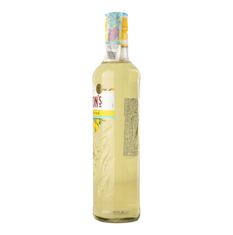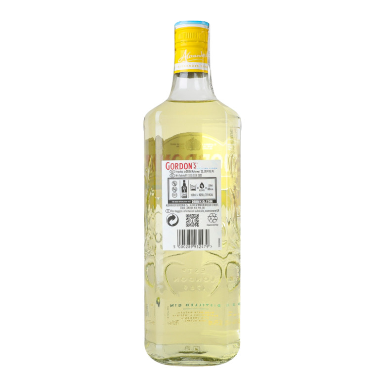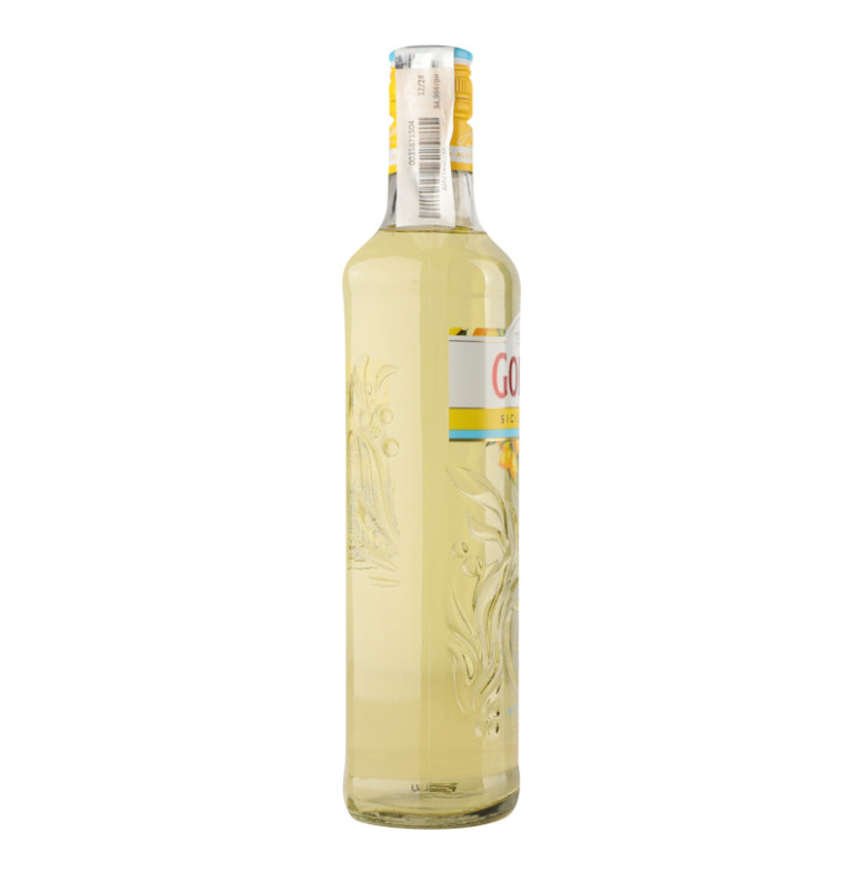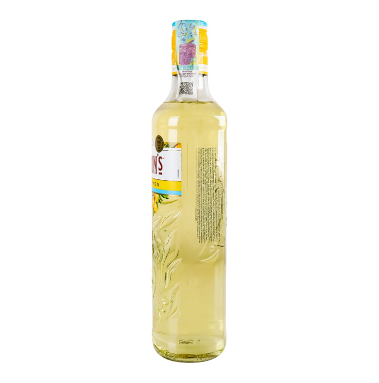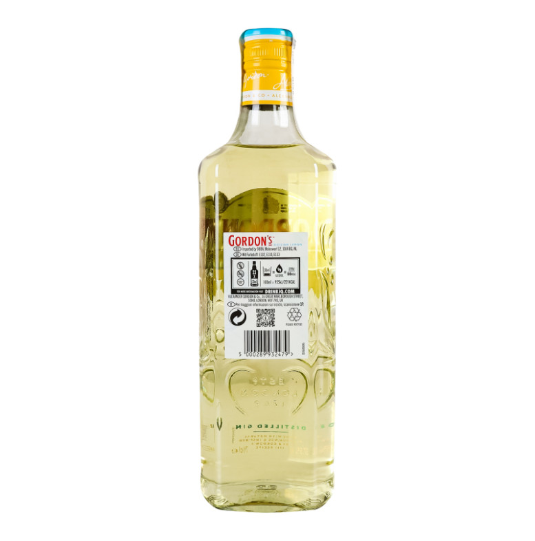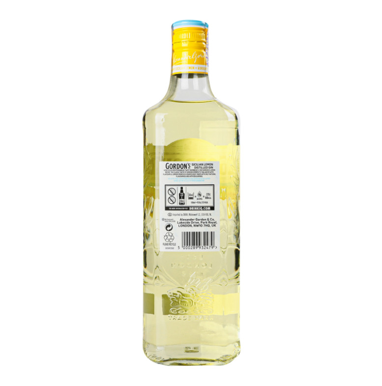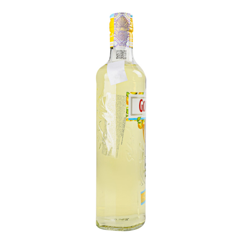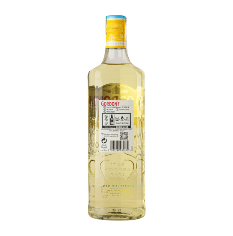 Склад: Спирт етиловий ректифікований, вода підготовлена, цукор, екстракти з рослинної сировини (плодів ялівцю та сицилійського лимону), барвники: Е102, E110, Е133