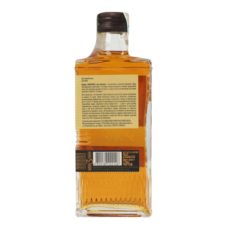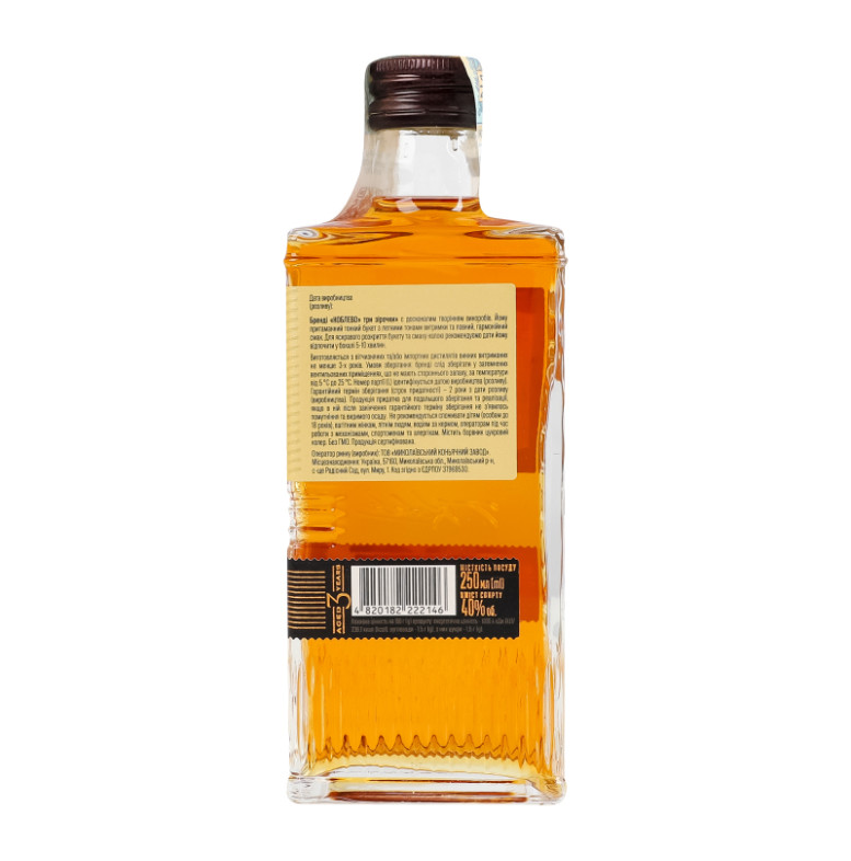 Склад: Вітчизняні та/або імпортні дистиляти винні витримані не менше 3-х років, барвник цукровий колер