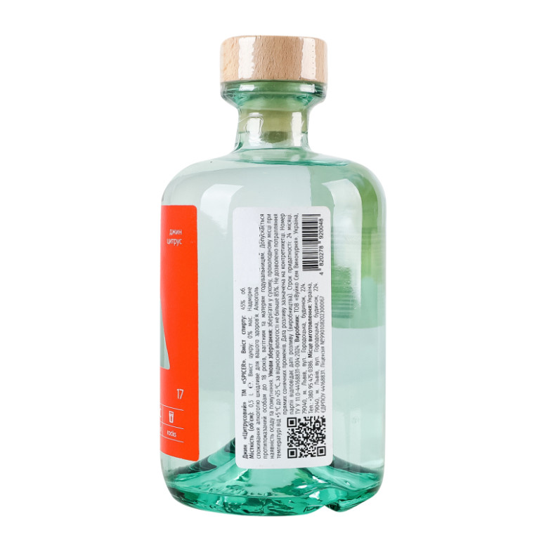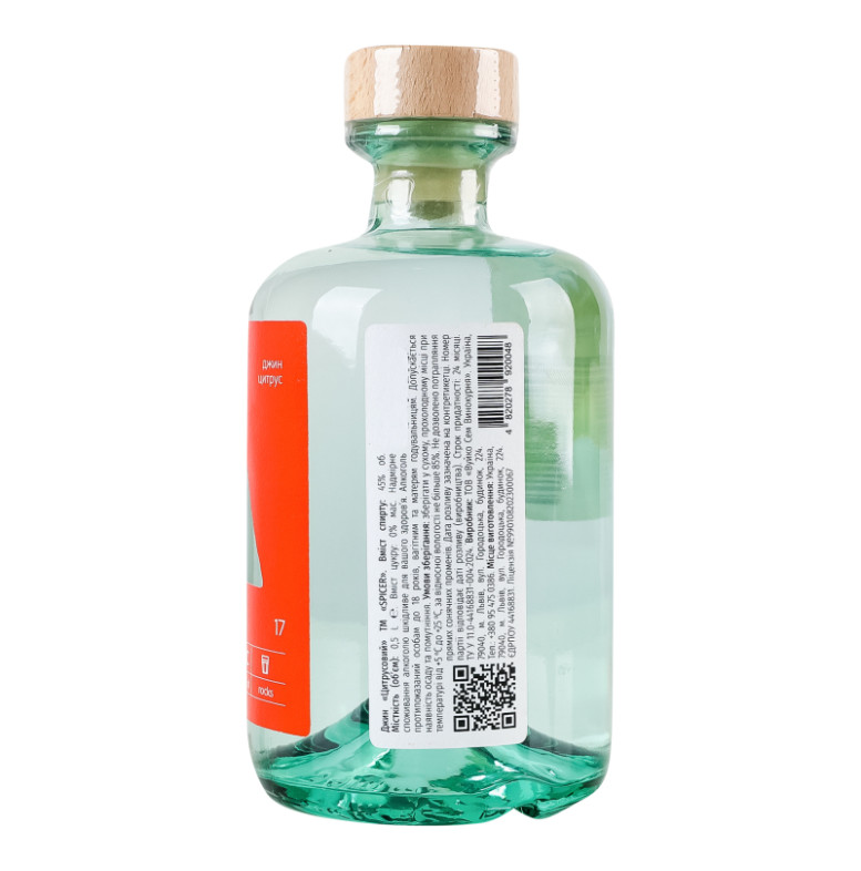 Склад: Вода питна підготовлена, ароматний спирт (дистилят з спирту етилового ректифікованого "Люкс" настояного на ягодах ялівцю, спеціях, цедрі цитрусових)