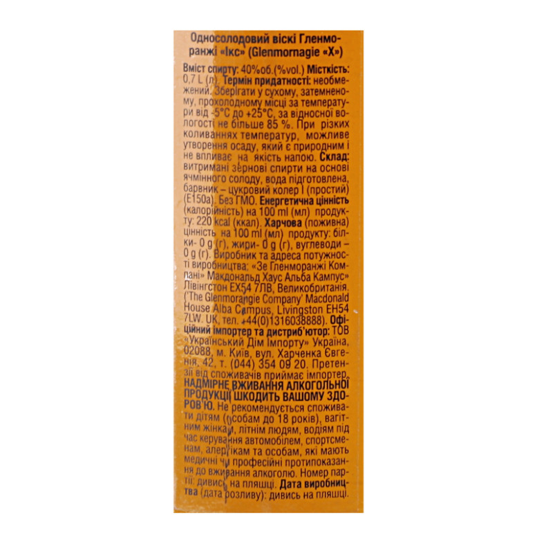 Віскі односолодовий X Glenmorangie 40% с/пл 700мл