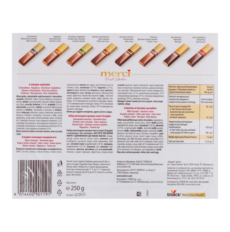 Набір шоколадних цукерок з начинкою і без начинки асорті Finest selection Merci к/у 250г