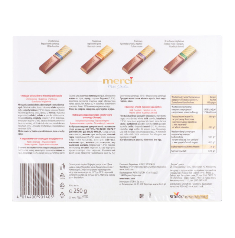 Набір шоколадних цукерок з начинкою і без начинки Milk selection Merci к/у 250г