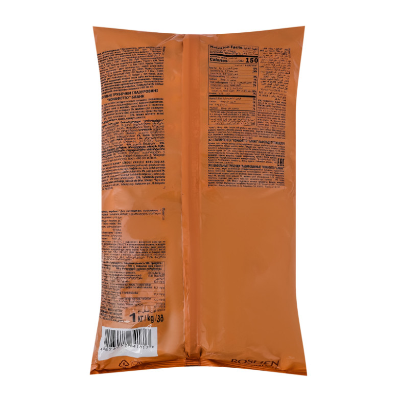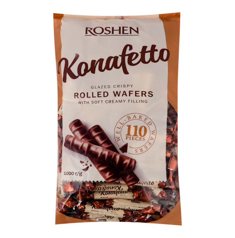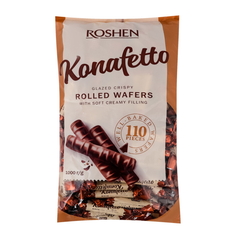 Трубочки вафельні глазуровані Konafetto blanc Roshen м/у 1кг