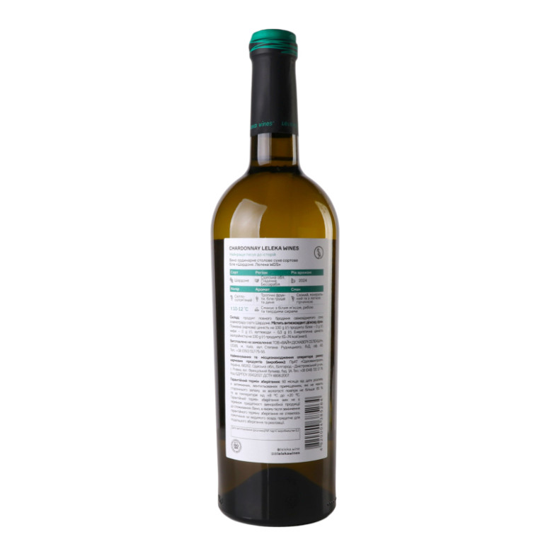 Вино 0.75л 12% біле сухе ординарне столове сортове Шардоне Leleka Wines пл
