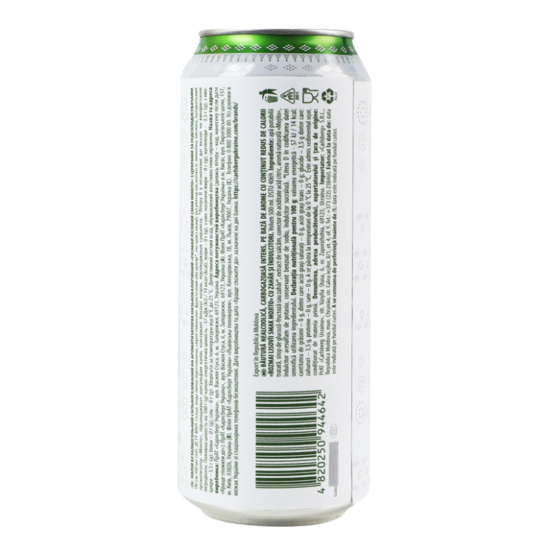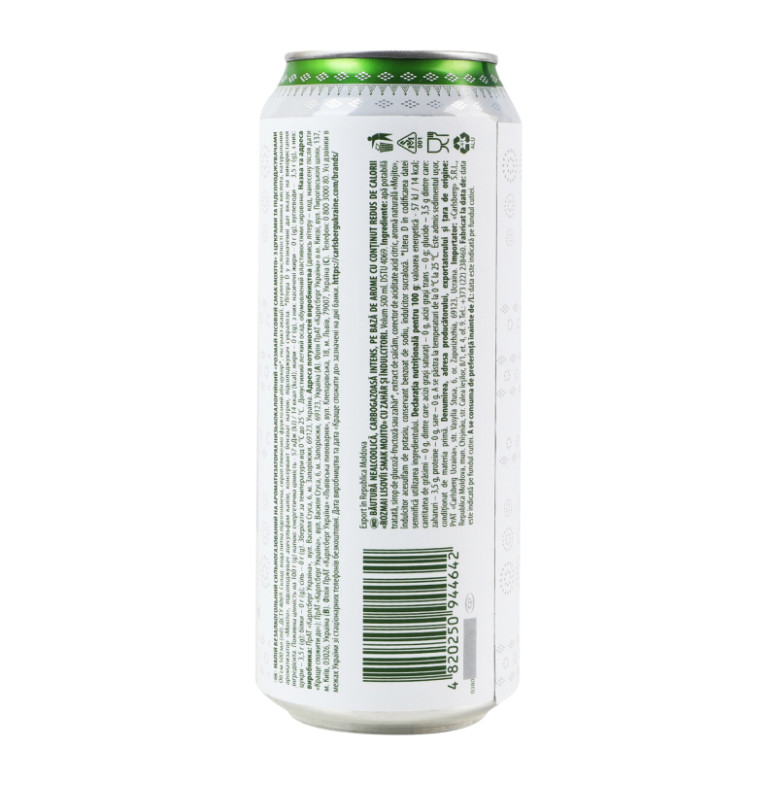 | Склад (укр.) | Вода питна підготовлена, сироп глюкозно-фруктозний або цукор, екстракт акації, регулятор кислотності лимонна кислота, натуральний ароматизатор "Мохіто", підсолоджувач ацесульфам калію, консервант бензоат натрію, підсолоджувач сукралоза |