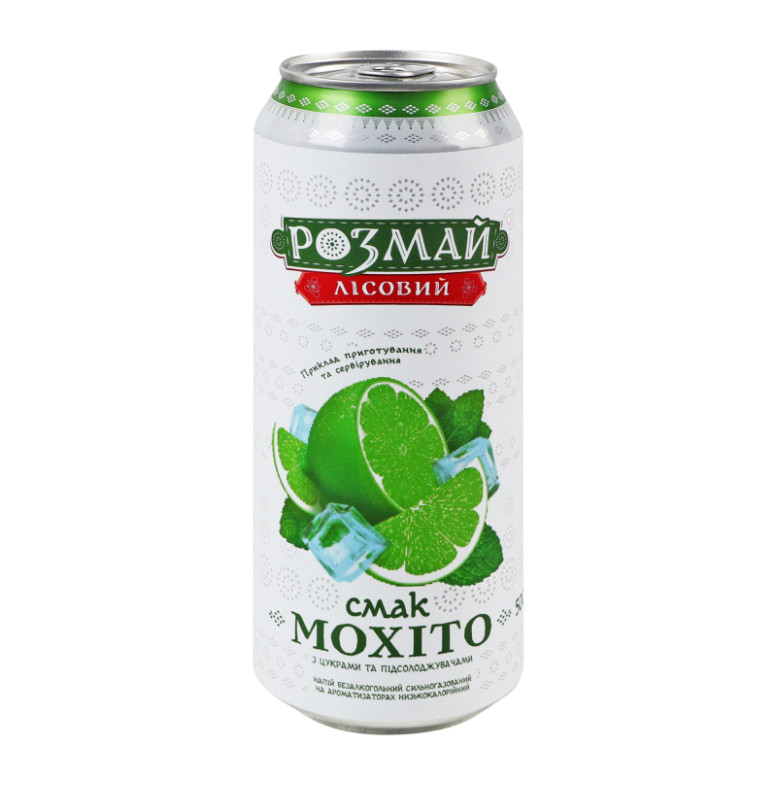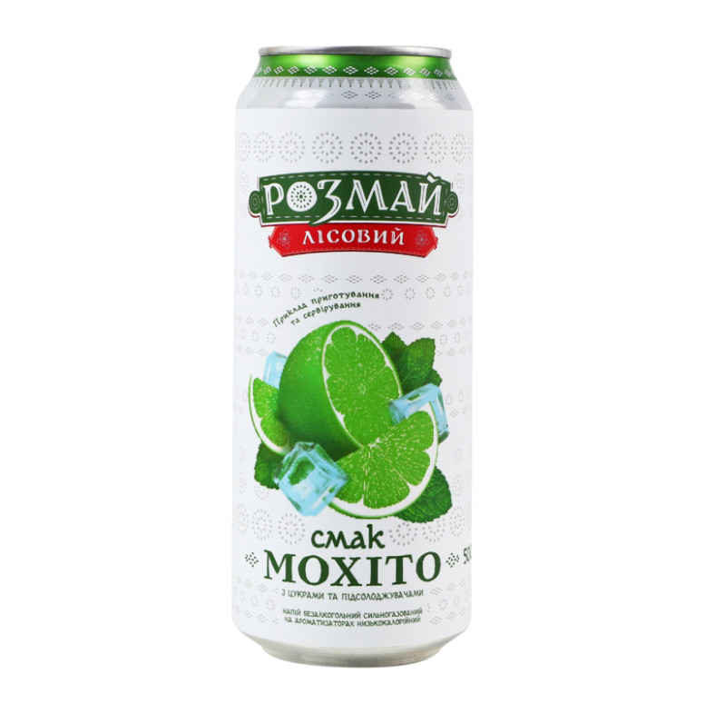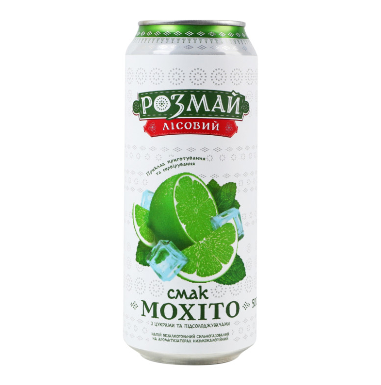 Напій безалкогольний сильногазований низькокалорійний на ароматизаторах з цукрами Мохіто Розмай Лісовий з/б 500мл