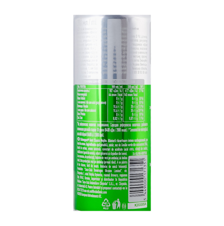 Склад (укр.) | Вода питна, цукор, сік лайма з концентрованого соку (3%), діоксид вуглецю, натуральні ароматизатори, кислота (лимонна кислота), регулятор кислотності (цитрати натрію), стабілізатори (гуміарабік та гліцеринові ефіри з деревної смоли) |