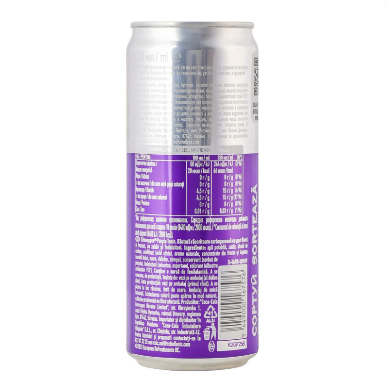 Напій безалкогольний сильногазований Purple Tonic Schweppes з/б 330мл