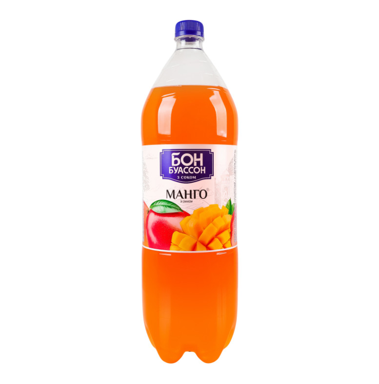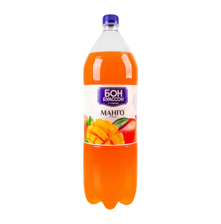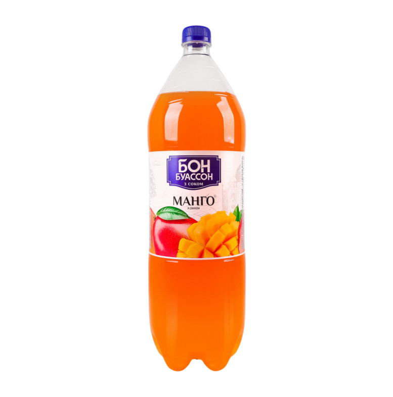 Склад: Вода, цукор, Мультифрукт (соки концентровані (1%): яблука, винограду, лимона, консервант бензоат натрію), регулятор кислотності лимонна кислота, ароматизатор Манго, ароматична емульсія Замутнювач (гуміарабік, гліцеринові ефіри деревної смоли, апельсинові терпени), харчові барвники Сонячний захід та Азорубін, консервант бензоат натрію, підсолоджувачі: цикламат, ацесульфам К та сукралоза