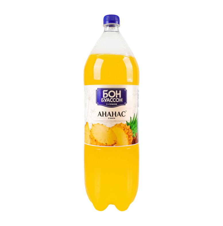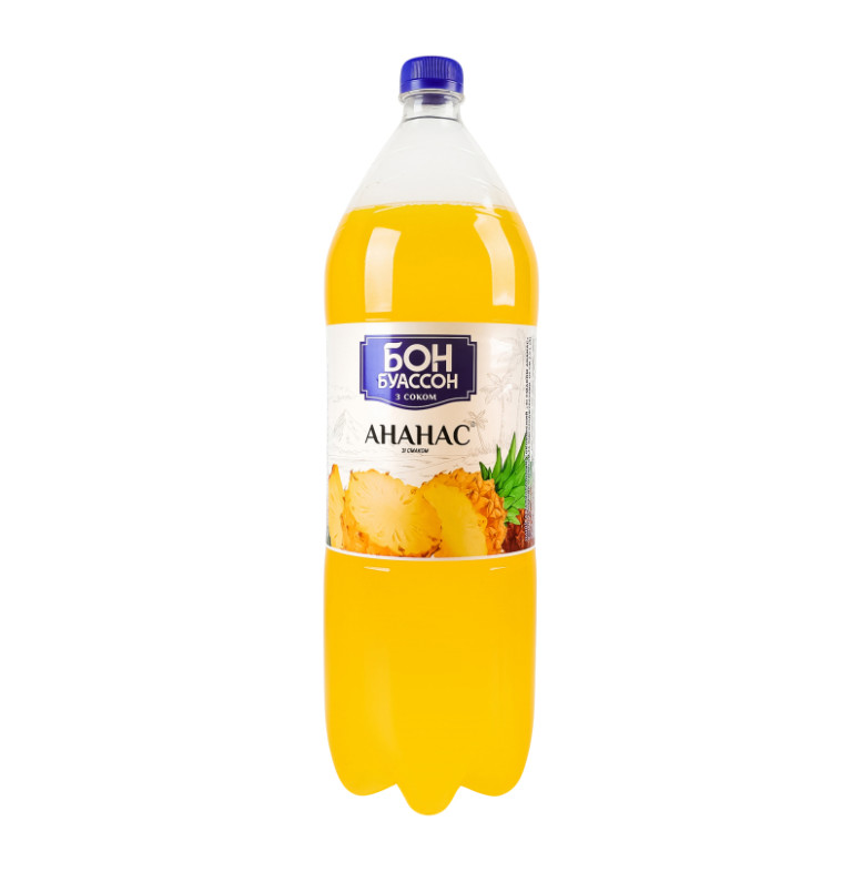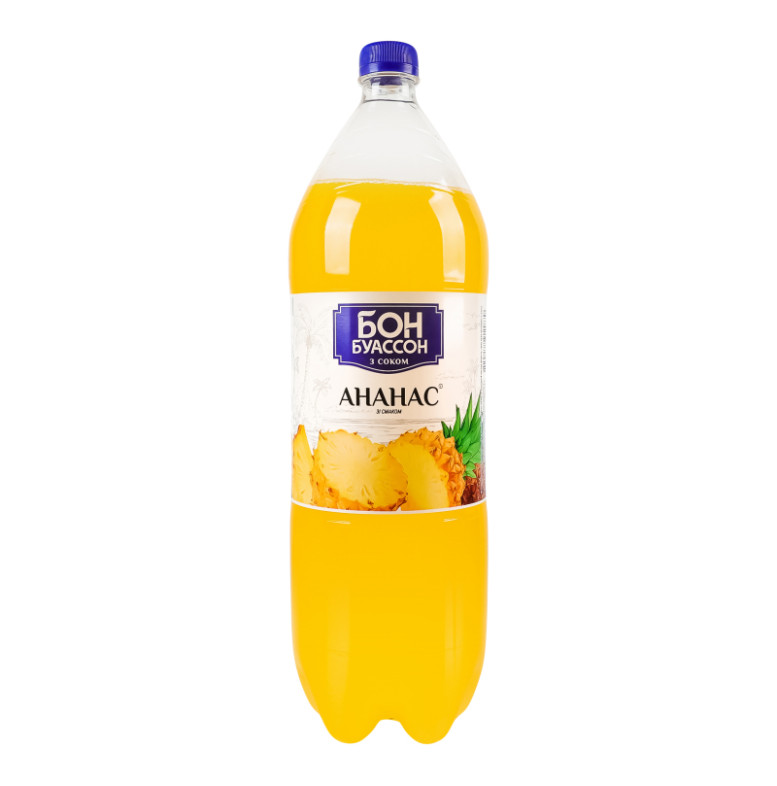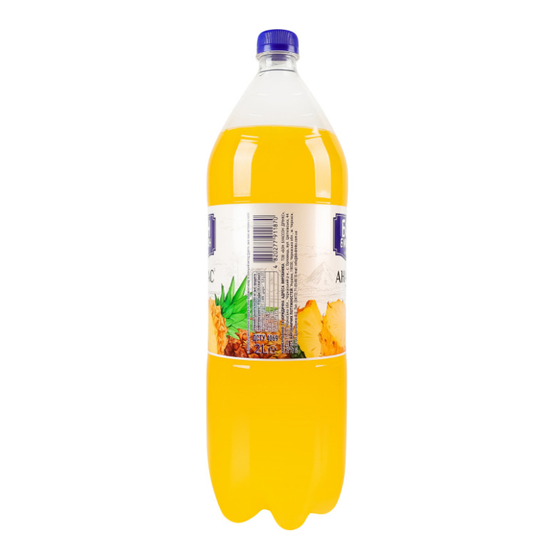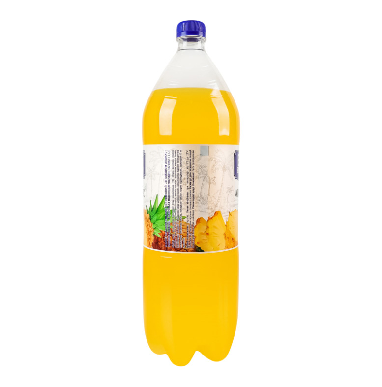 Склад: Вода, цукор, основа Мультифрут (соки концентровані (1%): яблука, винограду, лимона, консервант, бензоат натрію), регулятор кислотності лимонна кислота, ароматична емульсія Ананас (стабілізатори: гуміарабік та гліцеринові ефіри деревної смоли, ароматизатор, барвник бета-каротин), антиоксидант аскорбінова кислота, консервант бензоат натрію, підсолоджувачі: ацесульфам К та сукралоза