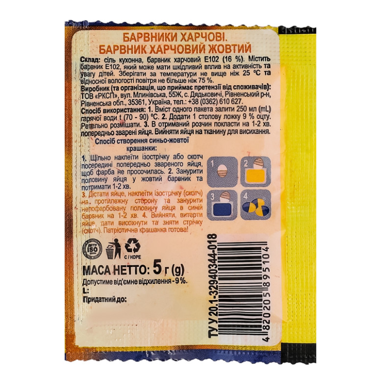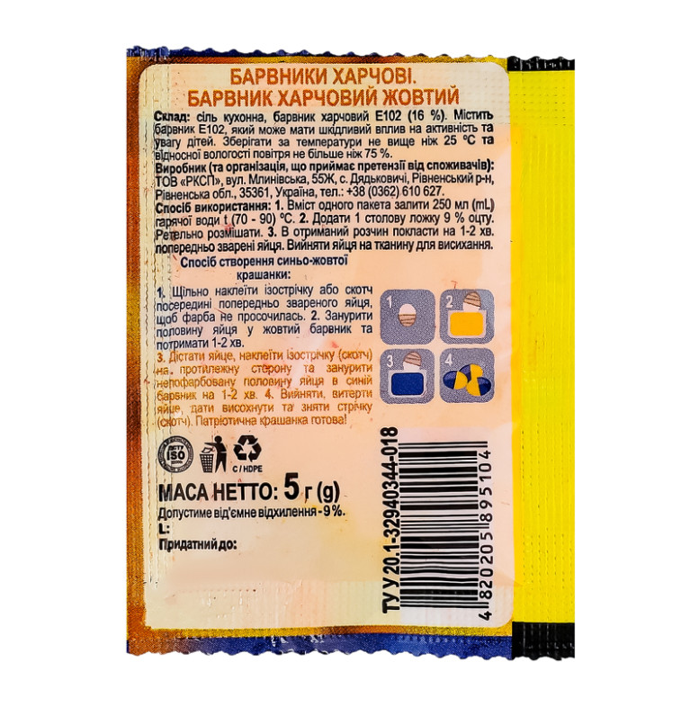 | Вид продукції | БАРВНИК ХАРЧОВИЙ |