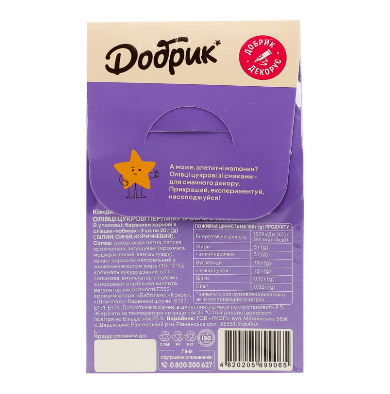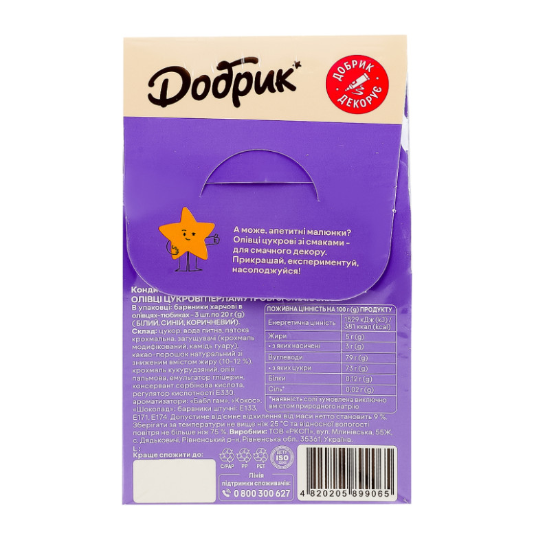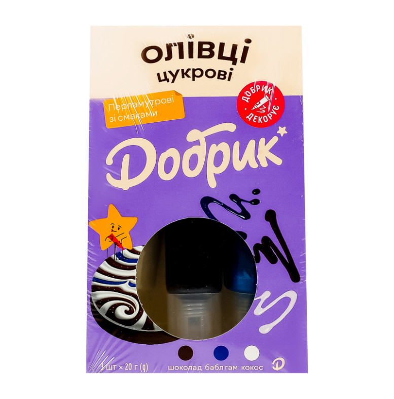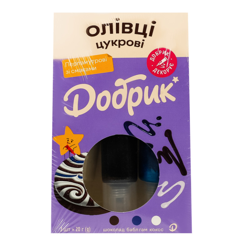 Декорації кондитерські Олівці цукрові перламутрові зі смаками Добрик к/у 3х20г