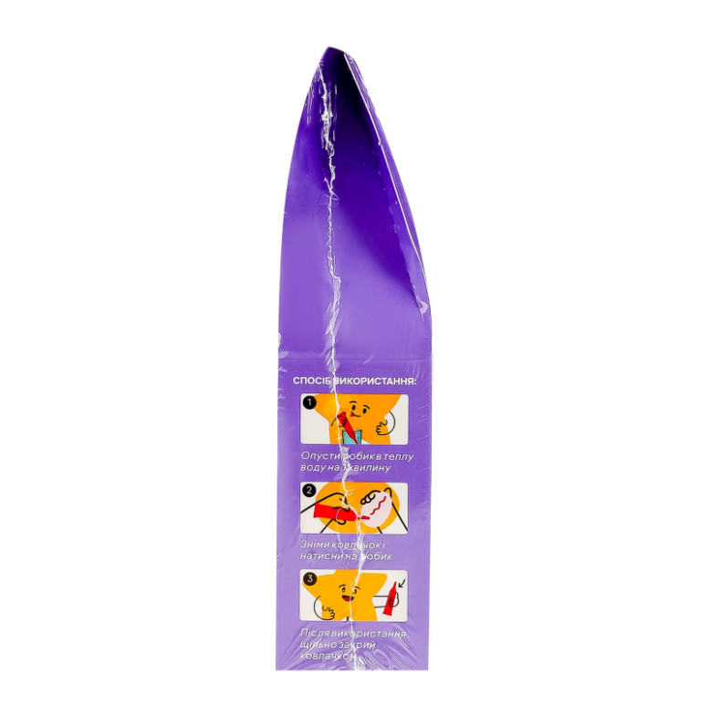 Склад: Цукор, вода питна, патока крохмальна, загущувачі (крохмаль модифікований, камедь гуару), какао-порошок натуральний зі зниженим вмістом жиру (10-12%), крохмаль кукурудзяний, олія пальмова, емульгатор гліцерин, консервант сорбінова кислота, регулятор кислотності Е330, ароматизатори: "Бабл гам", "Кокос", "Шоколад", барвники штучні: Е133, Е171, Е174